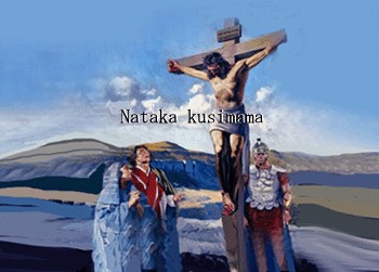 Nataka kusimama, chini ya msalaba.